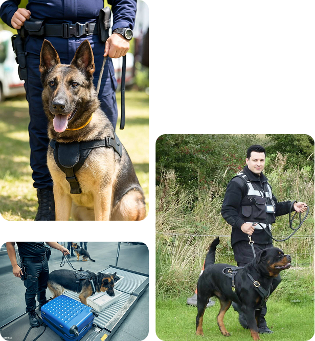 All handlers are SIA-licensed, professional, and provide fully trained service. Security dogs undergo continuous training in protection and maintain high performance standards.